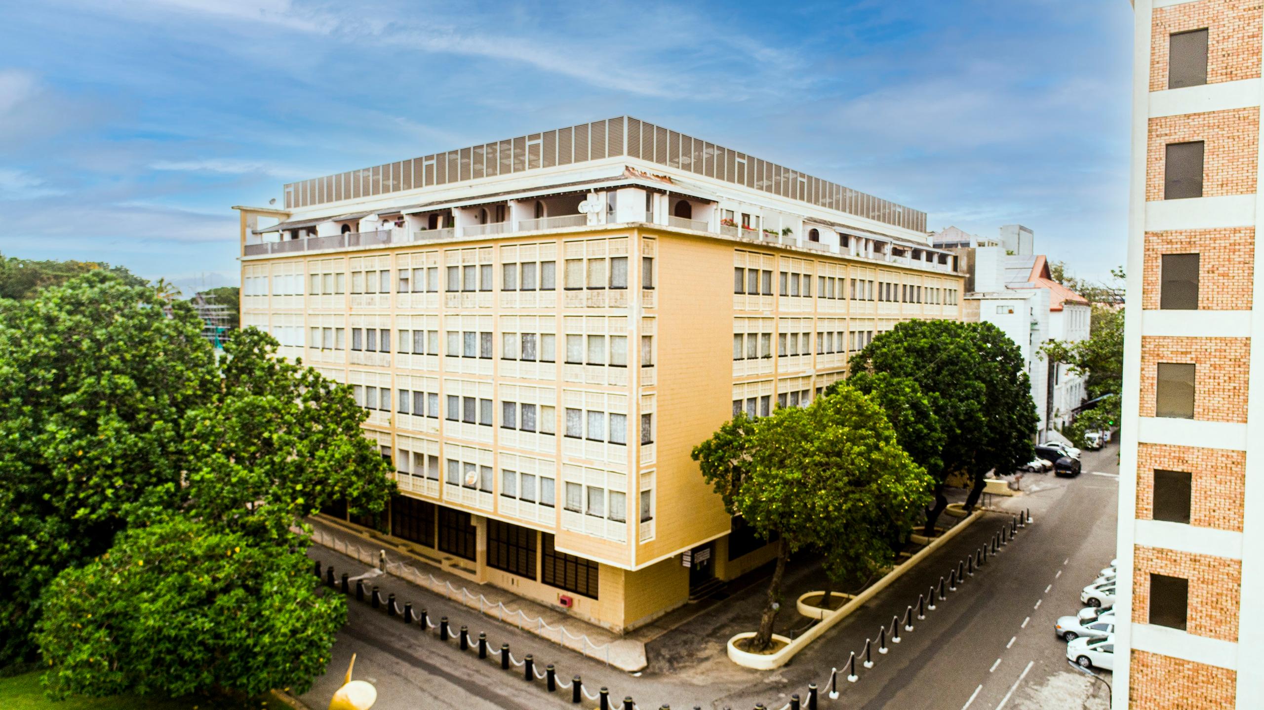 Viene progettato dagli architetti svizzeri K. Egender e W. Müller, che hanno firmato anche il palazzetto multifunzionale Hallenstadion di Zurigo. L’edificio si trova di fronte alla Banca nazionale, nel mezzo dell’area ad alta sicurezza di Colombo e si affaccia sull’Oceano Indiano. “La Marina è cresciuta intorno a noi”, spiega Blaser.