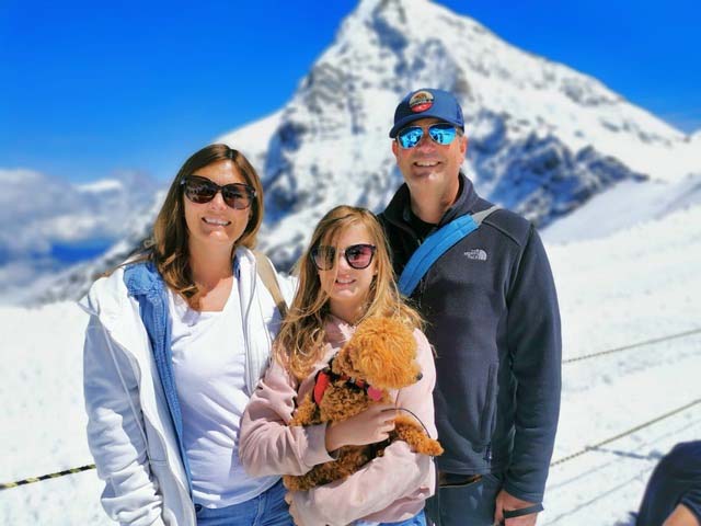 Vacanze sugli sci a Zermatt: Karin Schwab con la famiglia e il cane Hannah. zvg