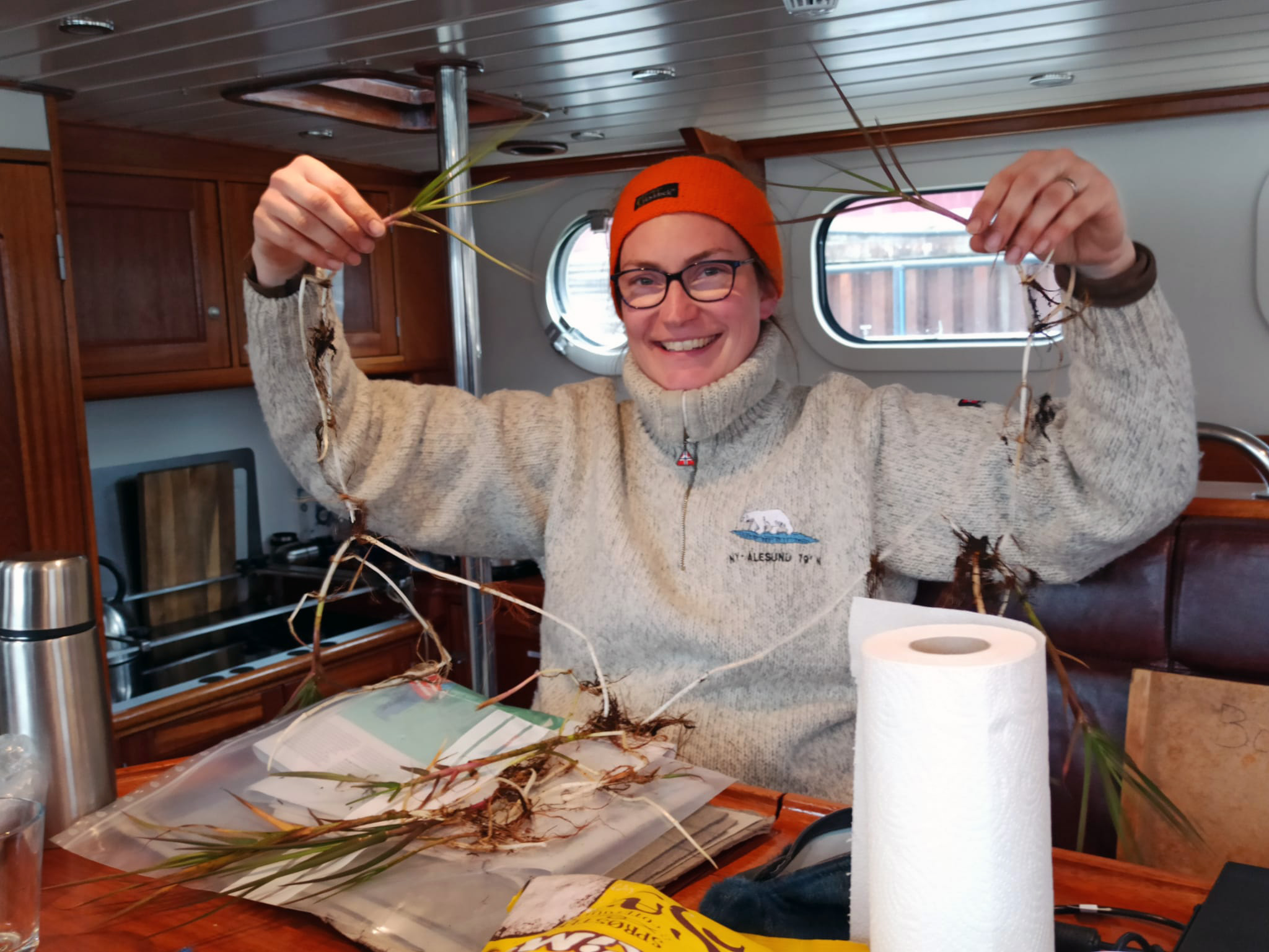 Eravamo spesso incerte su cosa stessimo cercando mentre attraversavamo i siti di ricerca. Molte piante erano molto giovani o molto più piccole di quanto descritto nei manuali per l’identificazione che avevamo con noi. Un terreno poco sviluppato e la carenza di sostanze nutritive sono solo due delle ragioni per cui queste piante sono spesso così striminzite. Anche le dure condizioni ambientali come le basse temperature, il permafrost e le estati brevi svolgono un ruolo importante. Inoltre, le forme differivano qualche volta, il che ha reso molto più difficile per noi l’identificazione diretta di alcune specie. In certi casi, abbiamo portato degli esemplari all’ostello o sulla nave per osservarli più in dettaglio la sera.