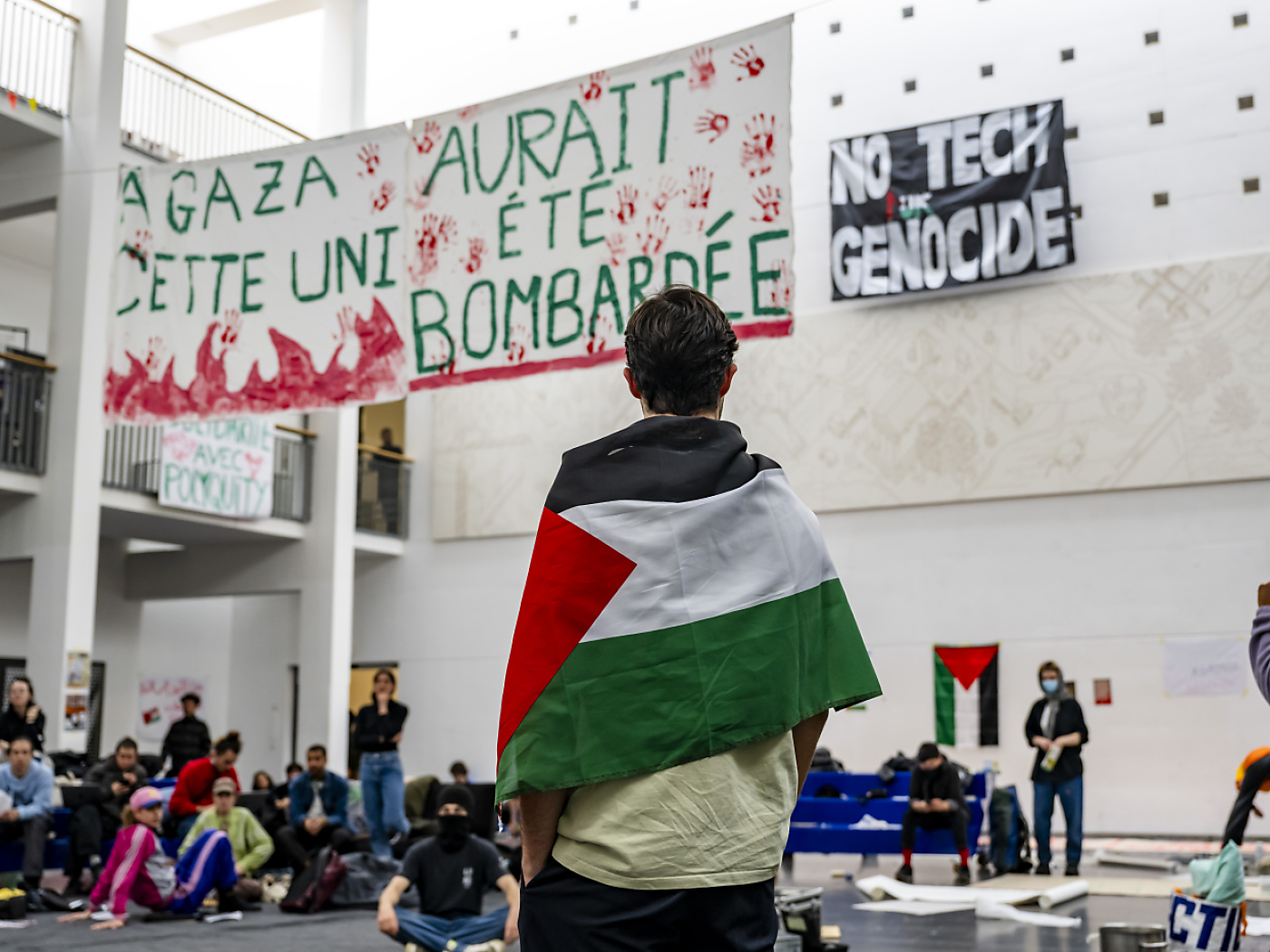 Su ogni piano dell’edificio sono state esposte bandiere palestinesi e striscioni con i messaggi “Palestina libera, stop al genocidio” e “Dal fiume al mare, la Palestina sarà libera”. I manifestanti hanno espresso la loro intenzione a voler trascorrere la notte nell’edificio, stando a quanto dichiarato al termine di un’assemblea convocata dal Coordinamento studentesco Palestina-Università di Ginevra. Il coordinamento si è detto aperto al dialogo e pronto a fare concessioni.
