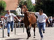 Le qualità del cavallo delle Franches-Montagnes sono state illustrate dall’Istituto nazionale dell’allevamento equino di Avenches, che ha fatto sfilare i migliori stalloni, a dimostrazione dell’instancabile lavoro di ricerca per promuovere quella che è l’unica razza equina autoctona in Svizzera. “Il nostro obiettivo al Mercato-Concorso – ha dichiarato a swissinfo Laurence Ferrari, veterinaria all’Istituto nazionale dell’allevamento equino – è stato quello di dimostrare la nostra attiva partecipazione al sostegno ed allo sviluppo della razza Franches-Montagnes. Ad Avenches abbiamo all’incirca un’ottantina di stalloni di questa razza, che mettiamo a disposizione degli allevatori per la riproduzione, al costo di 170 franchi per ogni monta”.