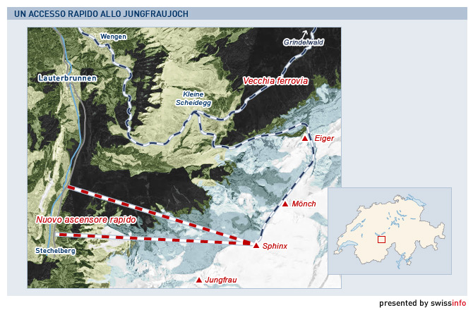 Il collegamento previsto, di 6 chilometri, sarebbe il più lungo di questo tipo al mondo e renderebbe possibile effettuare un’escursione allo Jungfraujoch anche avendo solo mezza giornata a disposizione.