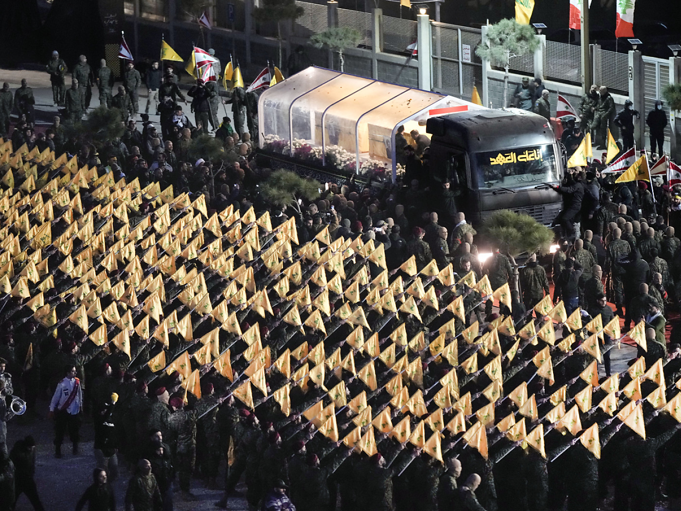 (Keystone-ATS) Decine di migliaia di persone, vestite di nero e col pugno alzato, hanno riempito la piazza della città dello sport nella periferia meridionale della capitale libanese, mentre i jet israeliani sorvolavano l’area dove si svolgevano i funerali.