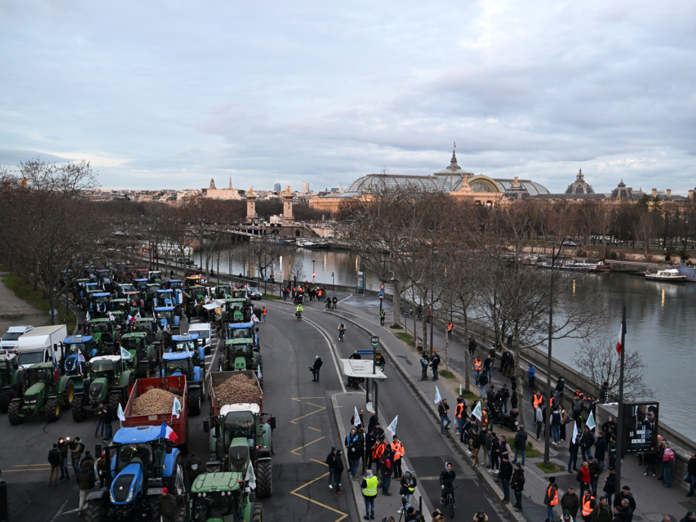 Secondo la prefettura di polizia di Parigi, alle 10.00 “353 trattori erano posizionati sul Quai d’Orsay, tra il Pont de l’Alma e il Pont de la Concorde”, nel cuore della capitale francese. “Quattrocento manifestanti sono riuniti nei pressi dell’Assemblea nazionale”, precisa la polizia parigina, aggiungendo che al momento non si segnalano particolari tensioni o incidenti.