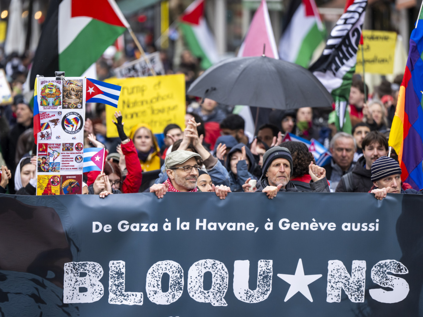 “Chiediamo la fine immediata delle guerre imperialiste che ci stanno portando alla catastrofe e fanno temere una guerra generale da un momento all’altro”, ha dichiarato un rappresentante dell’associazione Svizzera-Cuba Ginevra, fra le organizzatrici, assieme ad altre 33 associazioni, della manifestazione.