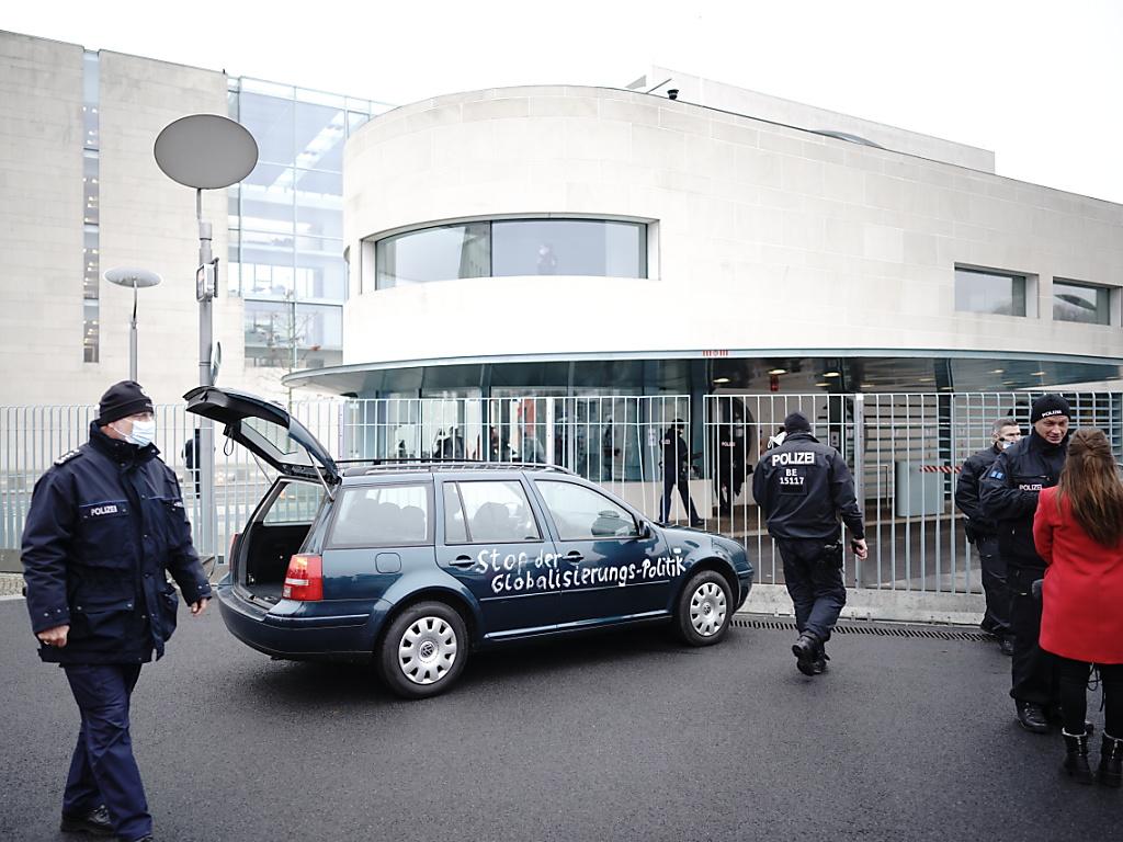 (Keystone-ATS) Un’auto con la scritta “stop alla globalizzazione” (“Stop der Globalisierungs-Politik”) e “maledetti assassini di bambini e anziani” (“Ihr verdammten Kinder- und alte Menschen-Mörder”) è piombata contro la cancellata della cancelleria tedesca a Berlino.