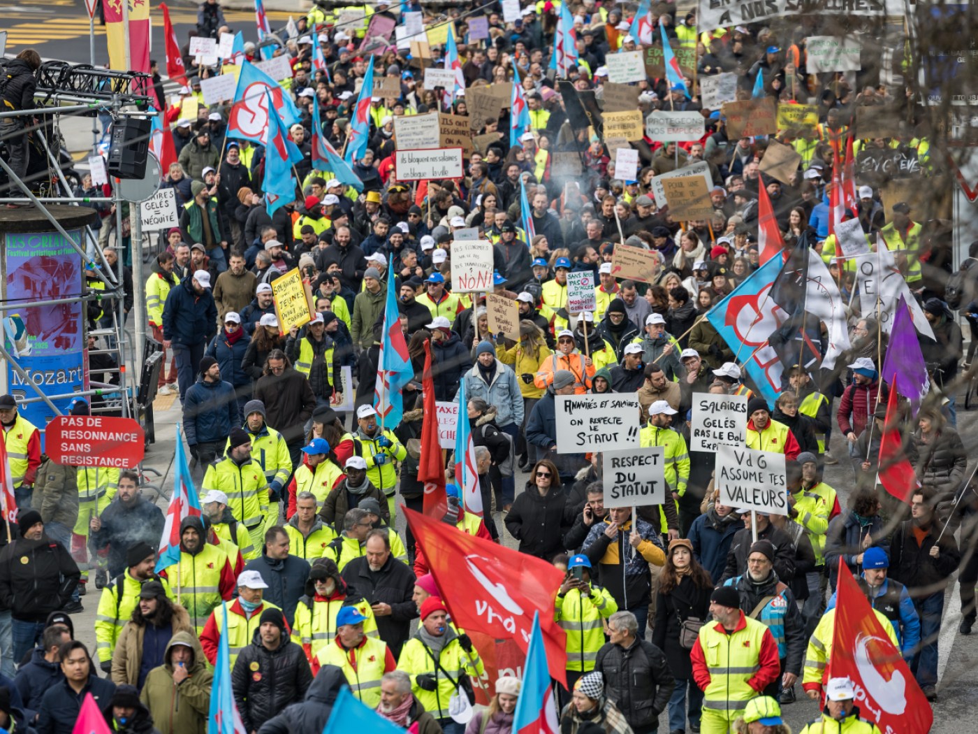 Gli scioperanti si sono ritrovati a Plainpalais, grande spianata nel cuore della città, in tarda mattinata per partecipare a una manifestazione. Sostenuti dalla commissione del personale e dai sindacati interprofessionali dei lavoratori (SIT) e dei servizi pubblici (SSP/VPOD), erano circa 500 alla partenza e quasi il doppio al loro arrivo nella Città Vecchia un’ora più tardi.
