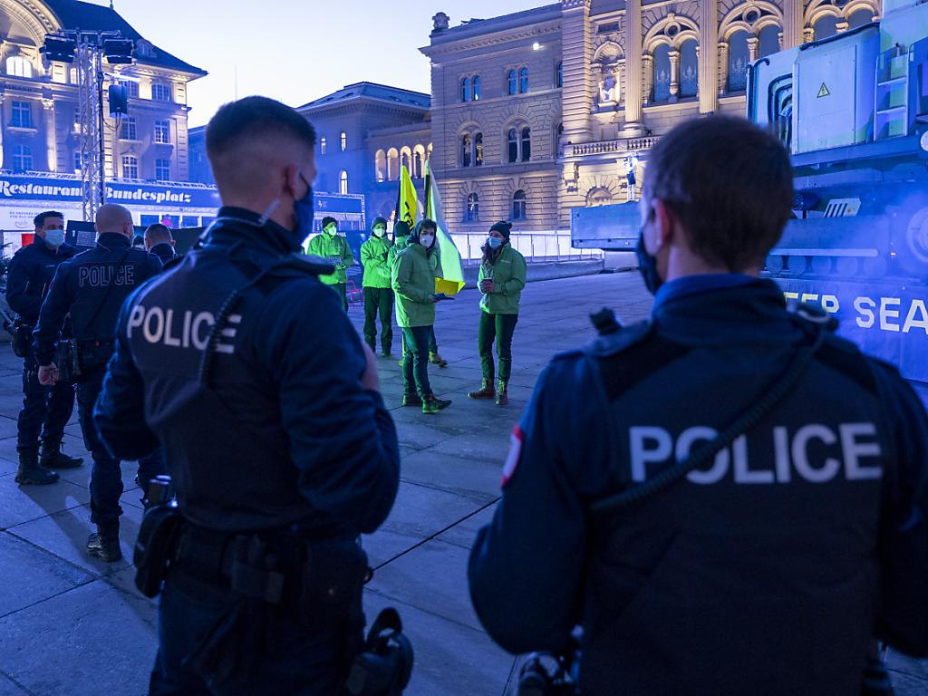 Quattordici attivisti hanno iniziato ad installare il manufatto lungo sei metri, alto cinque e largo 2,5 prima dell’alba. La polizia ha interrotto l’azione poco dopo, ha notato un fotografo di Keystone-ATS presente sul posto.