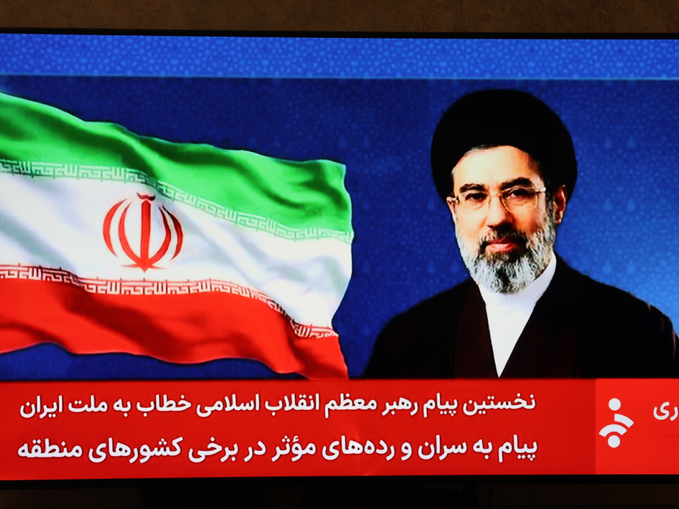 Mojtaba Khamenei non è apparso in pubblico: una speaker ha letto la sua dichiarazione sulla tv di Stato, con l’immagine del leader sullo sfondo.