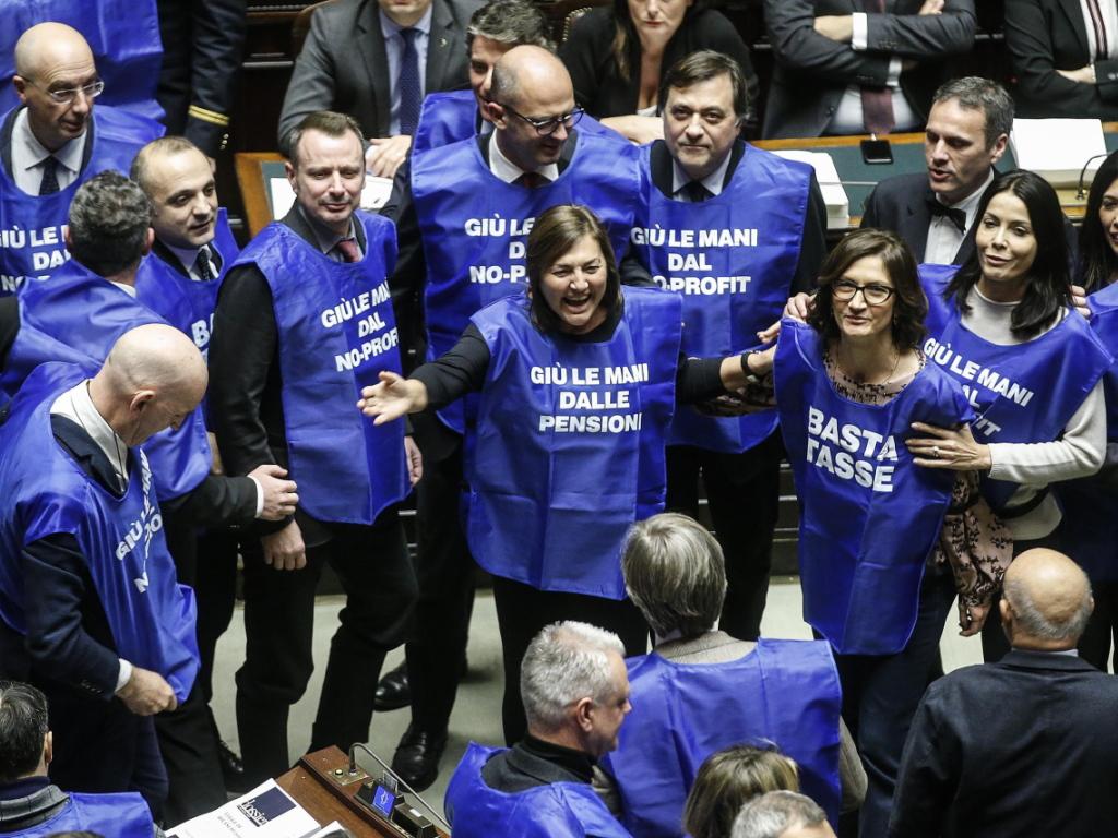 E poi proteste in piazza del Pd cui si unisce quella, inusuale, di Forza Italia, che non solo interrompe i lavori di Montecitorio, coi deputati bardati di ‘gilet azzurri’ al ‘grido’ basta tasse, ma annuncia di essere pronta a sua volta alla piazza.