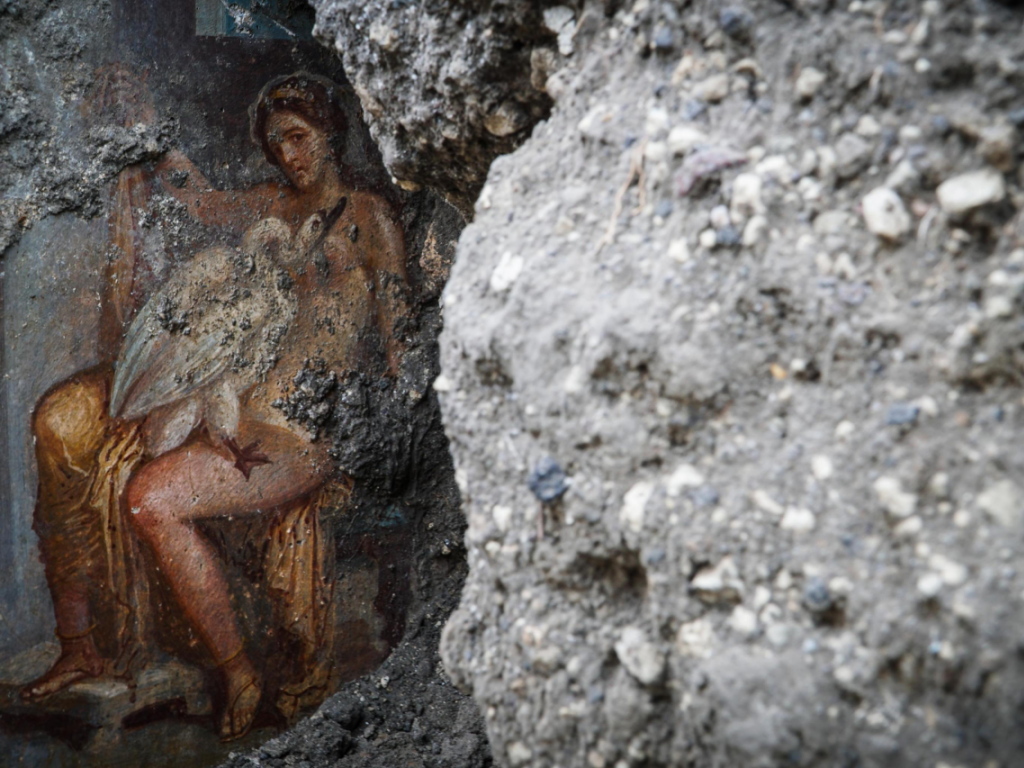 Gli interventi stanno interessando gli ambienti già noti della Casa di Leda (con l’ormai celebre sensuale affresco nel cubicolo di Leda e il cigno) partiti tra il 2018 e il 2019 ed ora si allargano agli ambienti delle due domus limitrofe. “C’è l’ipotesi che l’affresco sia opera della stessa bottega attiva nella casa di Leda, o forse una committenza unica”.