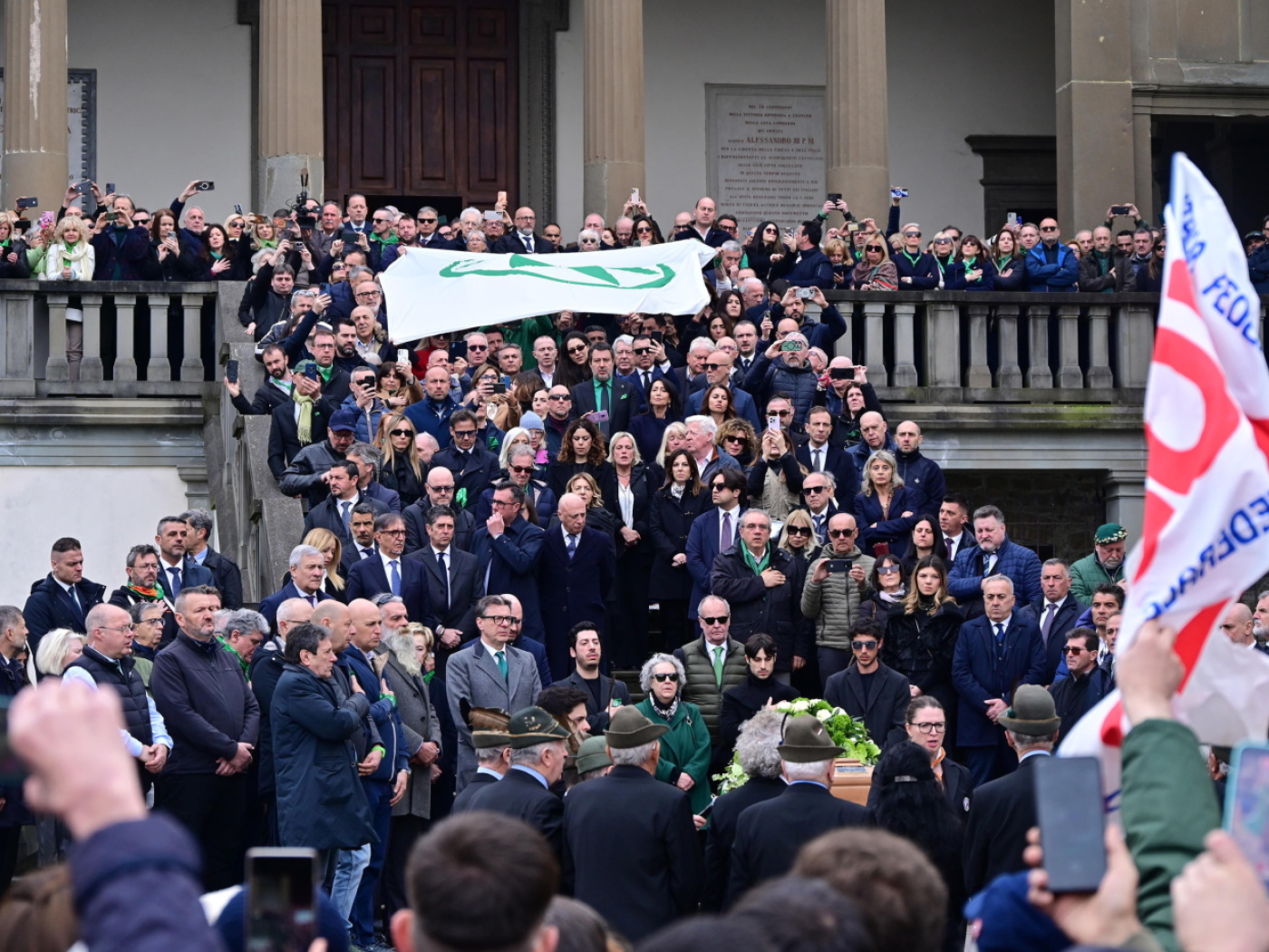 Niente funerali di Stato per il fondatore della Lega, che voleva difendere il Nord e sognava il federalismo se non addirittura la secessione, ma comunque a rendergli l’ultimo saluto c’erano le massime cariche istituzionali: la premier Giorgia Meloni, il vice Antonio Tajani insieme all’altro vice Salvini, il presidente del Senato Ignazio La Russa, quello della Camera Lorenzo Fontana, diversi ministri ed esponenti politici. E poi ovviamente i big del partito, da Zaia a Fedriga fino a Massimiliano Romeo e Riccardo Molinari. Tra le 400 persone ammesse in chiesa anche Fedele Confalonieri e Marcello Dell’Utri ed il senatore a vita Mario Monti.