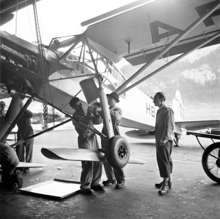 Su iniziativa di due piloti dell'esercito svizzero, a Meiringen due velivoli polivalenti del tipo "Fieseler Storch" vengono equipaggiati di carrelli con sci. Questi ultimi erano stati testati in atterraggi in alta montagna durante la Seconda guerra mondiale, ma mai in un caso di emergenza prima di allora.