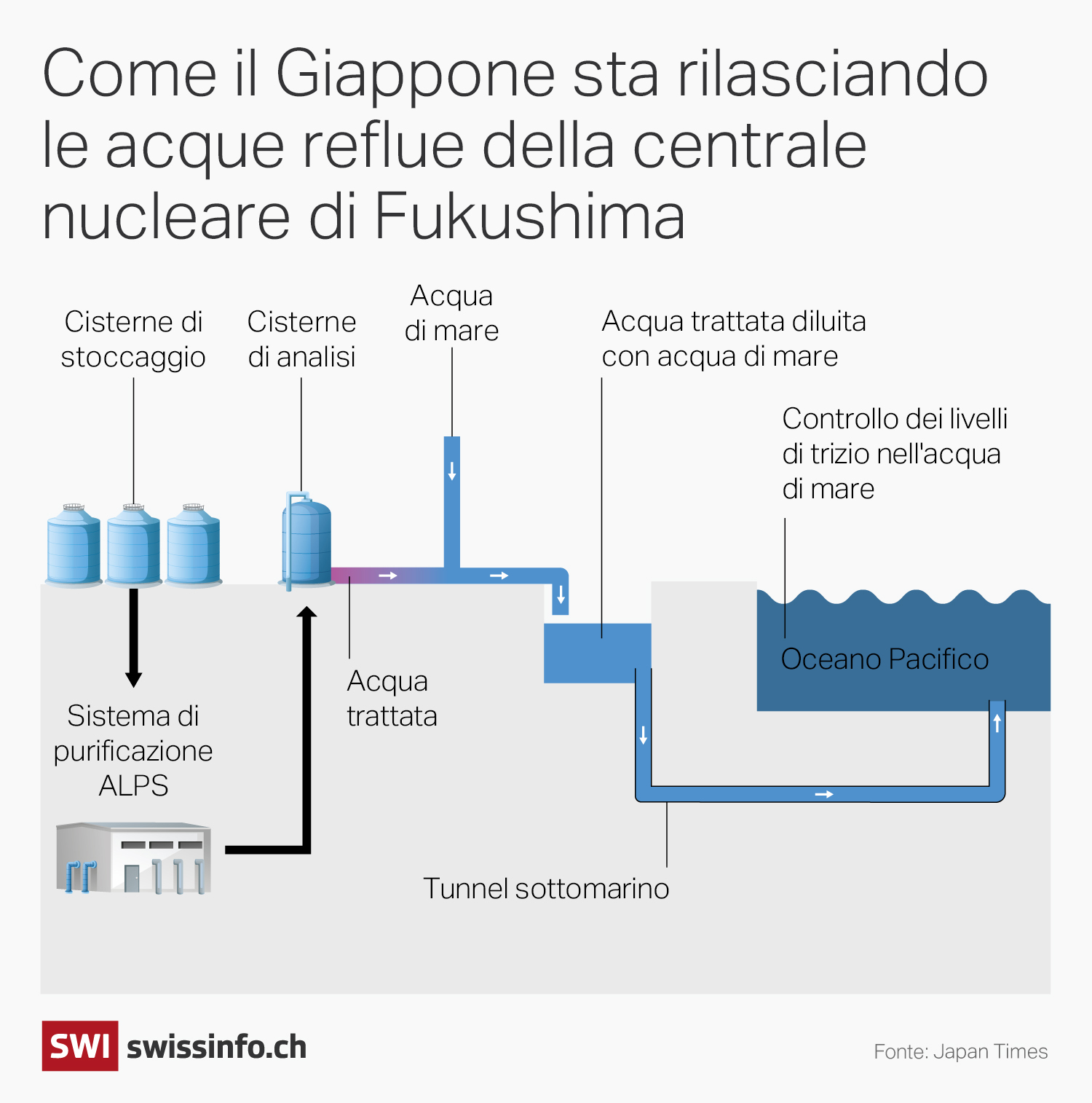Il Giappone ha cominciato a riversare nel Pacifico le acque reflue della centrale nucleare in dismissione di Fukushima, gravemente danneggiata da uno tsunami. Un laboratorio svizzero svolge un ruolo essenziale nel verificare che lo scarico di acqua contaminata soddisfi gli standard internazionali. I deflussi fomentano timori nella popolazione locale e nei Paesi vicini, come la Cina.