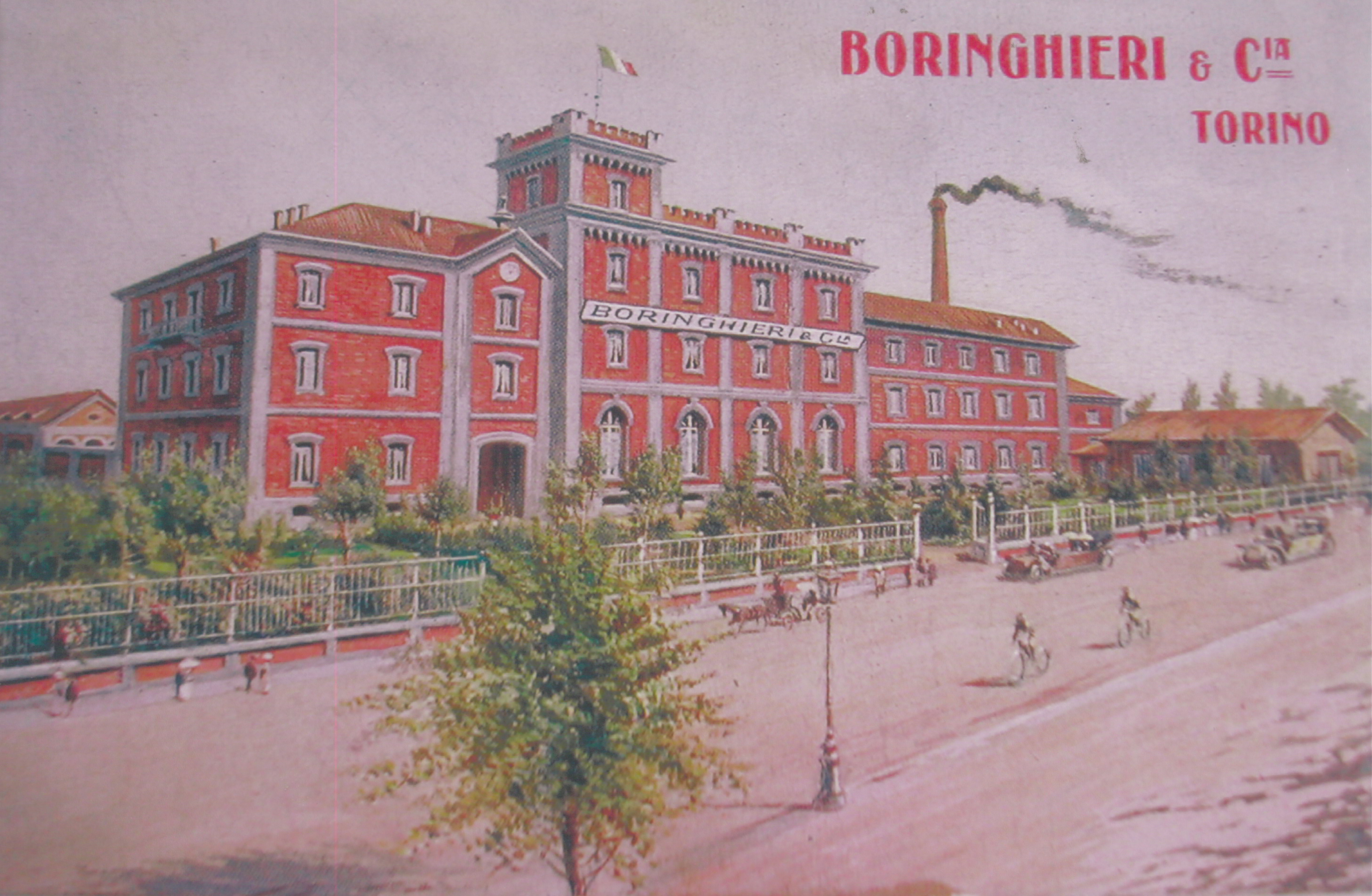 «Nel 1879 Andrea Boringhieri – unito in matrimonio proprio con una Bosio, Anna – fa costruire una fabbrica di birra in un’area incolta, senza temere la concorrenza dei cognati, ma incoraggiato dal fatto che la birra si stava trasformando in una bevanda sempre più popolare». In poco tempo questo elegante edificio di mattoni rossi diventerà un luogo simbolico, al punto che l’intero quartiere viene tuttora ricordato dai più anziani col nome dei Boringhieri. «L’orologio – posto sulla torre merlata centrale – dettava l’ora per tutto il quartiere, al punto che a volte la popolazione protestava dicendo di aver perso il treno per colpa sua…».