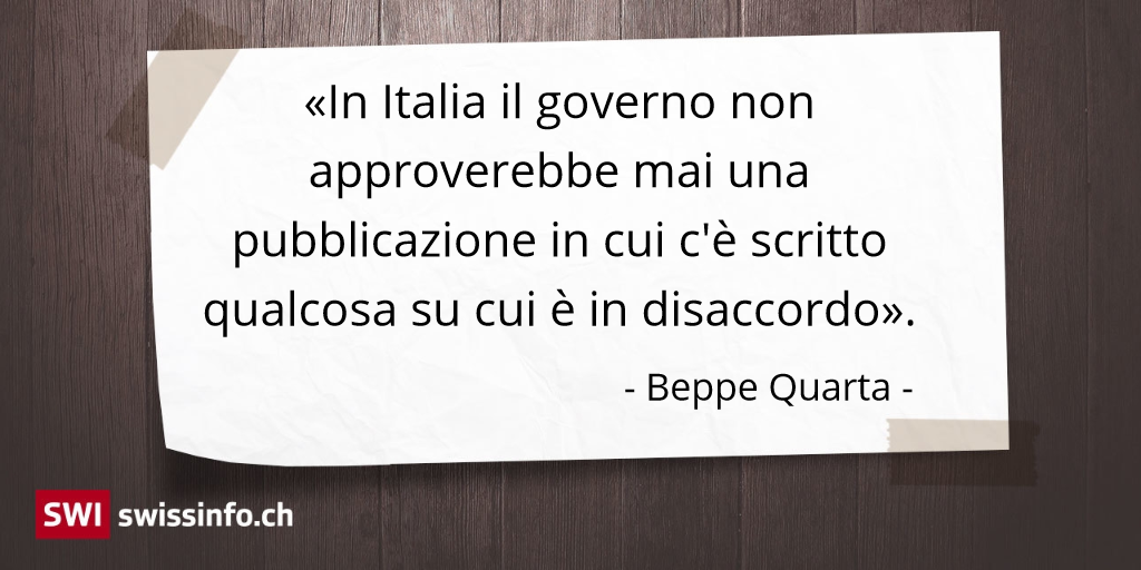 Beppe Quarta, cittadino italo-svizzero, concorda: «In Italia (…) per informarsi bene bisogna seguire dei programmi in TV o sui giornali. Ma siccome la politica controlla entrambe le fonti, basta trovarsi su un canale o su un giornale appartenente a qualche ideologia politica per aver sentito solo una campana».