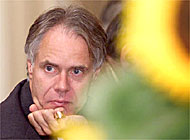 Il consigliere federale Moritz Leuenberger a Losanna, dove ha espresso il suo personale sostegno al triplice sì alle tasse sull'energia Keystone