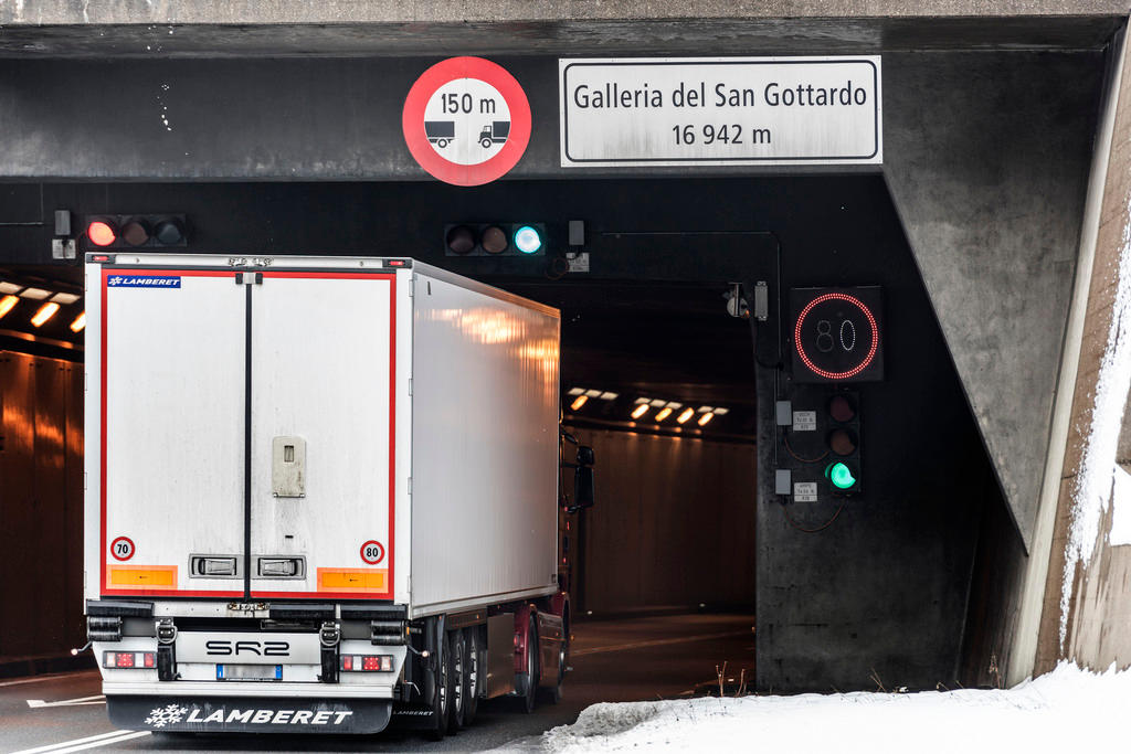 La soluzione di compromesso, iscritta nella legge federale sul trasferimento del trafficoCollegamento esterno, prevede un limite massimo di 650’000 passaggi annui di camion sulle Alpi svizzere due anni dopo l’apertura della galleria ferroviaria di base del Gottardo. L’apertura è avvenuta nel 2016, ma il numero di passaggi attraverso le Alpi è ancora superiore alle 900’000 unità.