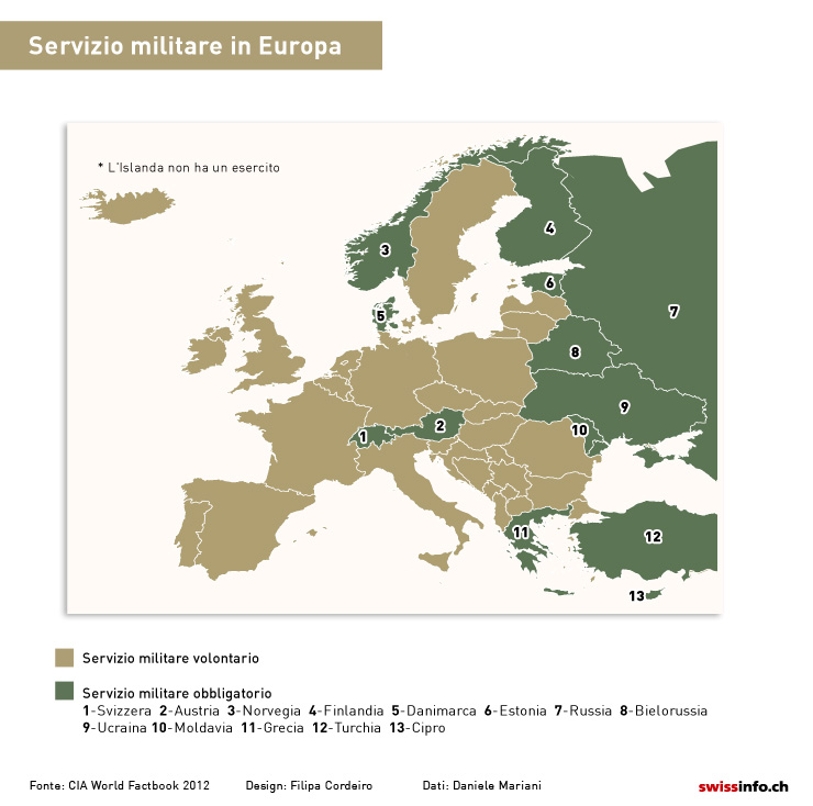La Svizzera resta tra i rari paesi dell’Europa occidentale che oggi mantengono la coscrizione obbligatoria. La proposta di abolire questo obbligo è stata spazzata via senza mezzi termini in votazione popolare domenica.