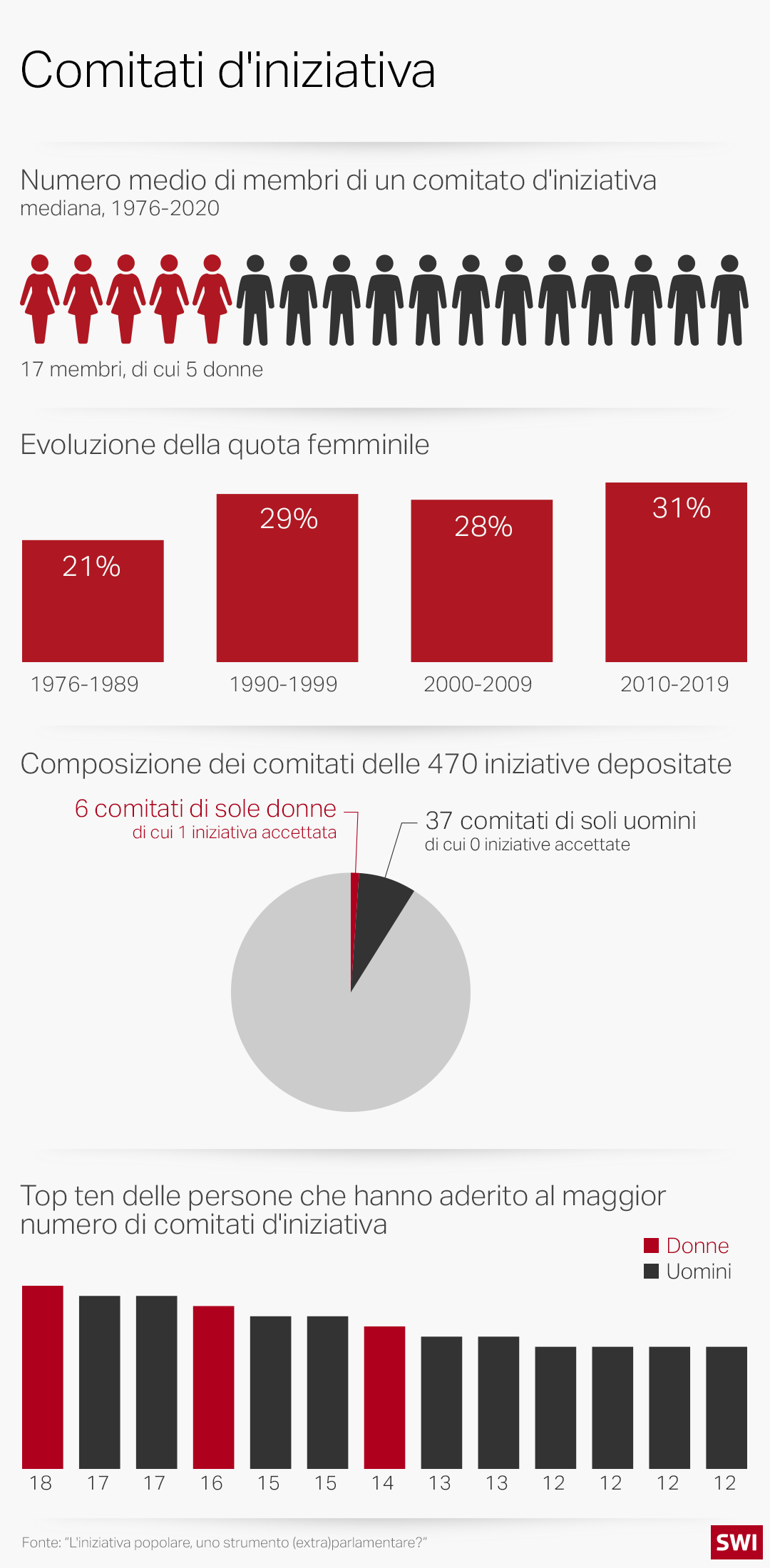 Oltre al diritto di voto e di eleggibilità, anche i diritti popolari erano molto importanti: la democrazia diretta – afferma Fetz – invita la gente a partecipare alla politica anche al di fuori del parlamento. Lei stessa ne è la prova: con 18 adesioni a comitati d’iniziativa nazionali, detiene il record svizzero tra tutte le donne e gli uomini aventi diritto al voto, secondo uno studioCollegamento esterno del Centro per la democrazia di Aarau.