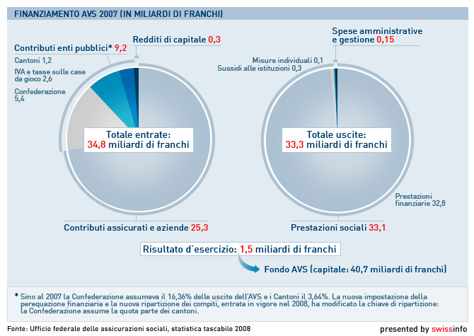 Le spese dell’AVS di un anno corrispondono all’incirca alle sue entrate annue, vale a dire che, nel corso dello stesso lasso di tempo, i contributi che entrano sono versati ai beneficiari di rendita, quindi “ripartiti”.