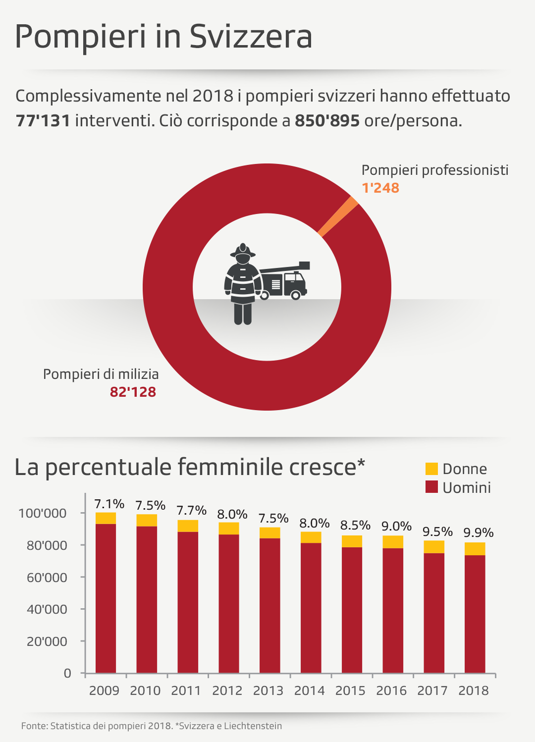 Motivazioni che sembrano tuttavia scemare tra i giovani. Le statistiche mostrano infatti che in Svizzera, mentre gli interventi dei pompieri volontari continuano ad aumentare, gli effettivi continuano a diminuire.