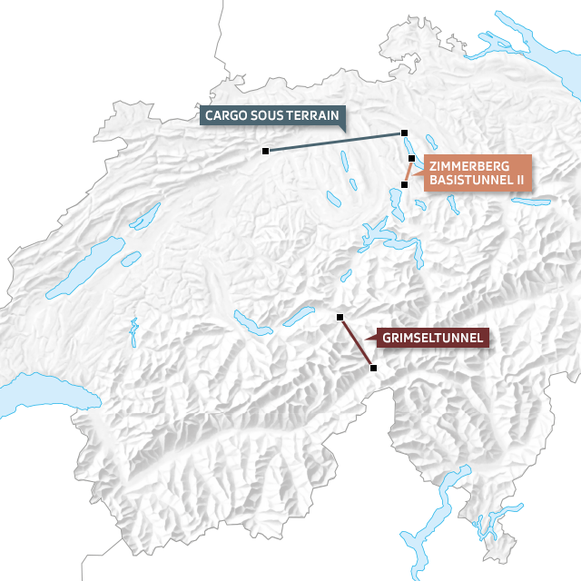 Un anno fa, il 1 °giugno 2016, è stata inaugurata la galleria di base del San Gottardo, il tunnel ferroviario più lungo al mondo. La Svizzera non intende però fermarsi qui e sta pianificando il suo futuro sotterraneo, a partire da un metrò per il trasporto delle merci. Sguardo su tre progetti.