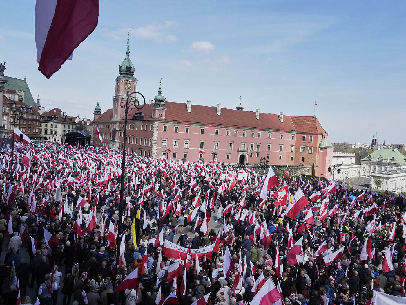 Migliaia di polacchi, tra cui il candidato conservatore alle elezioni presidenziali del 18 maggio Karol Nawrocki, hanno marciato oggi nella capitale, seguendo l'appello del partito dell'opposizione nazionalista Diritto e Giustizia (PiS).