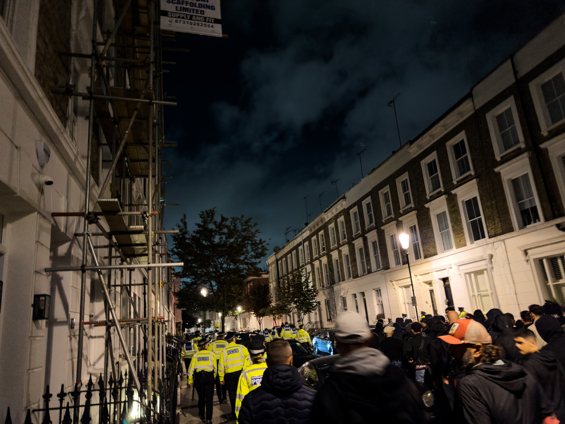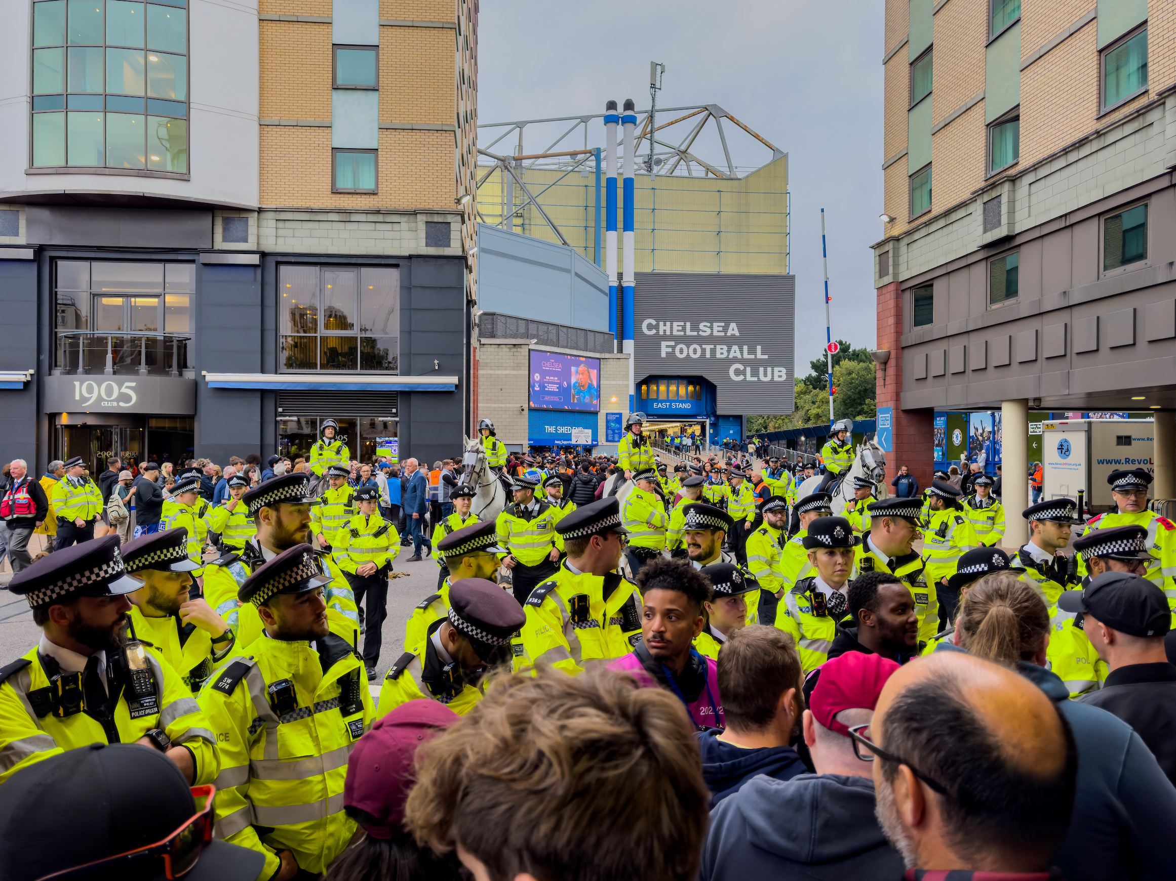 Dal lato da cui è giunta la tifoseria ospite, lo stadio di Londra era nascosto dagli edifici, circondato da una muraglia di steward e di agenti di polizia, alcuni dei quali a cavallo.