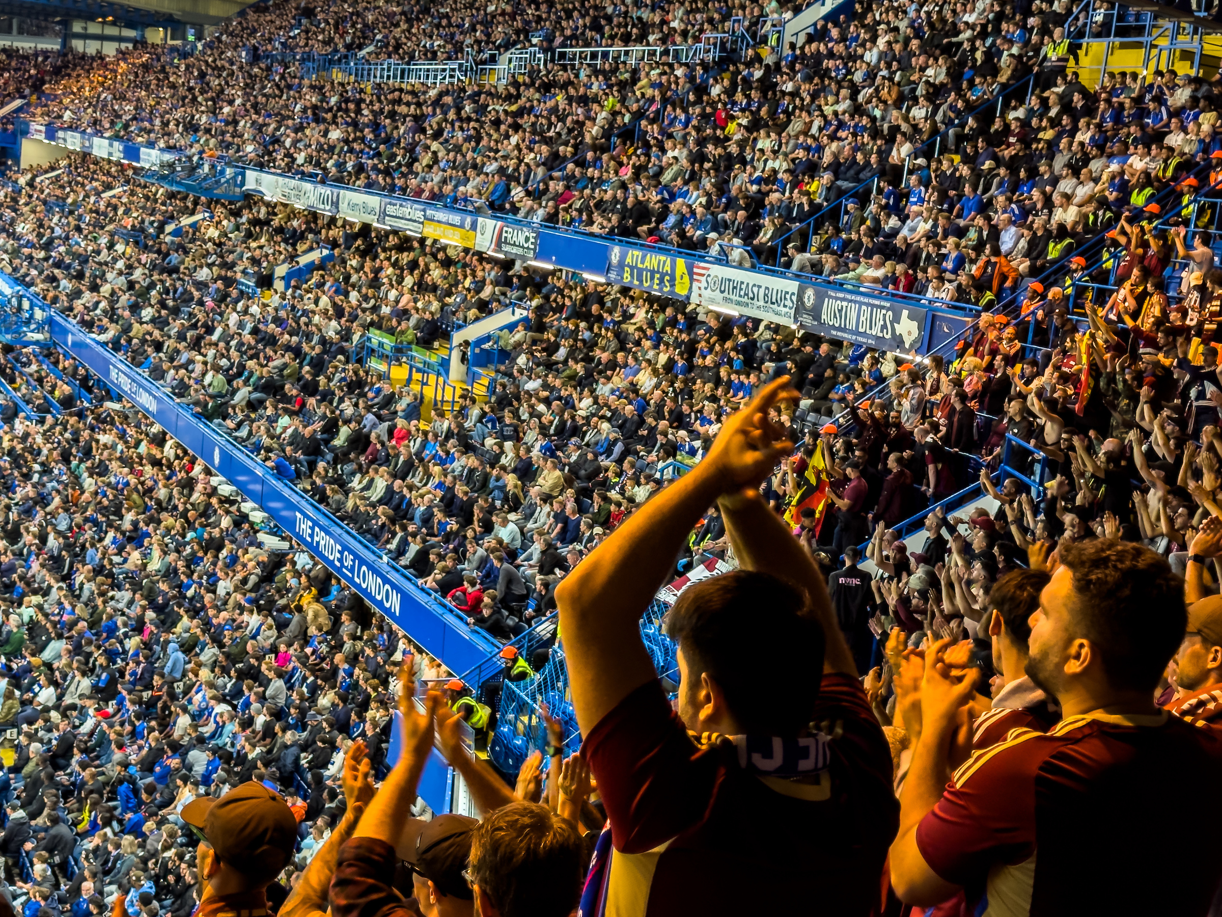 Lo Stamford Bridge è una cattedrale del calcio, con una verticalità spettacolare, una vista chiara e ravvicinata da ogni posizione. Ben presto si è riempito di 37’900 tifosi e tifose.