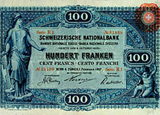 La Banca nazionale diede quindi l’incarico di disegnare le banconote a due dei più conosciuti artisti dell’epoca: Eugène Burnand e Ferdinand Hodler. Il risultato è stata la seconda serie di banconote, la più longeva (la prima, detta “interinale”, fu stampata sul modello di quelle delle precedenti banche di emissione con l’aggiunta del rosone e della croce federale in sovrastampa). I biglietti firmati da Burnand e HodlerCollegamento esterno sono stati emessi per la prima volta tra il 1911 e il 1914 e sostituiti solo nel 1956/57.