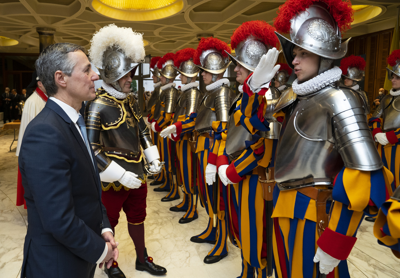 La cerimonia di giuramento delle nuove reclute della Guardia pontificia, in programma lunedì 6 maggio, è spesso l’occasione per una visita in Italia da parte del o della presidente della Confederazione (nella foto Ignazio Cassis nel 2022). Anche quest’anno le nuove Guardie svizzere potranno contare sulla presenza delle massime autorità dello Stato. Viola Amherd presenzierà infatti alla cerimonia.