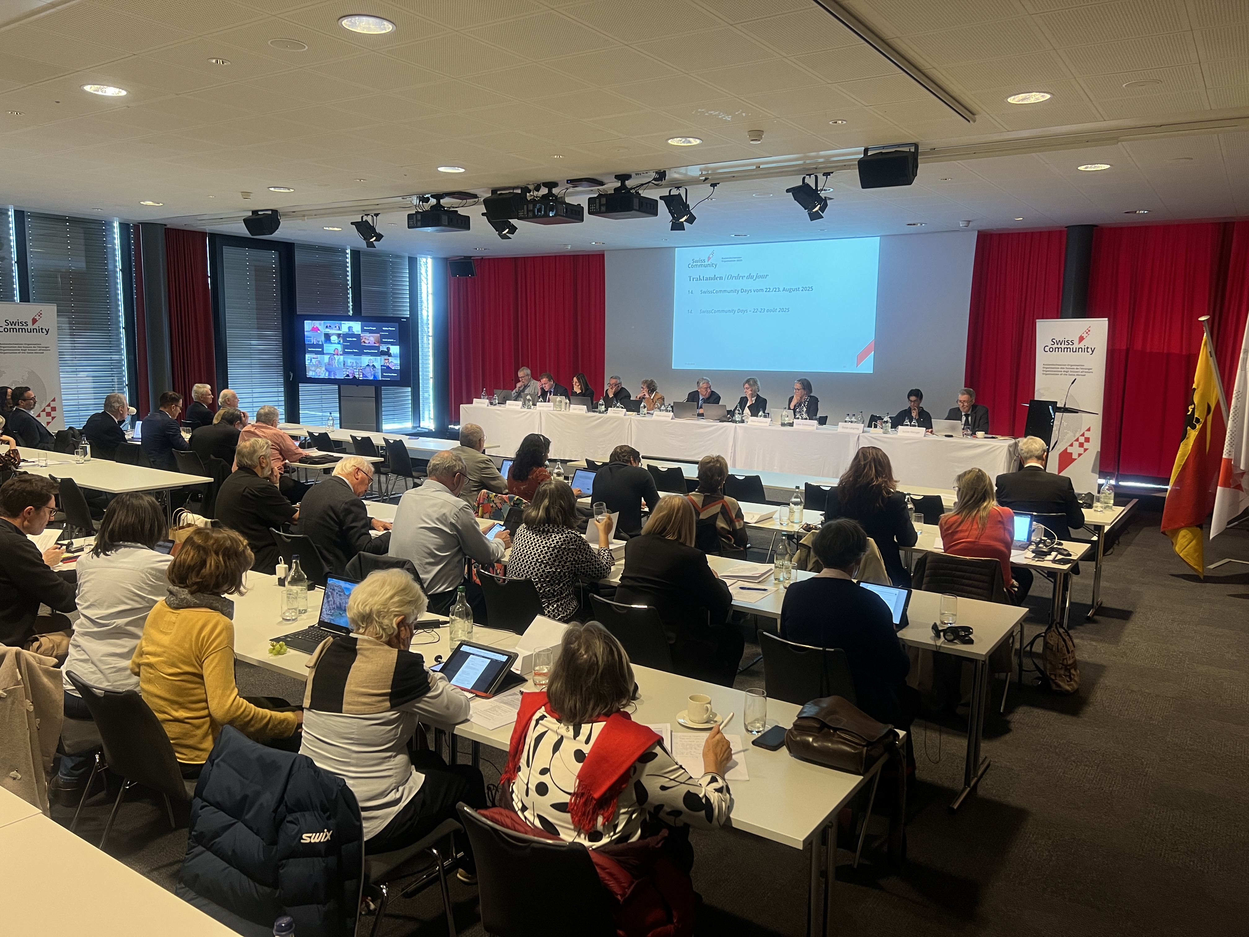 Il presidente dell’OSE, Filippo Lombardi, ha accolto 77 delegati e delegate all’ultima sessione della legislatura in corso del Consiglio degli svizzeri all’estero: 51 membri erano presenti venerdì al Kursaal di Berna, 26 hanno partecipato online.
