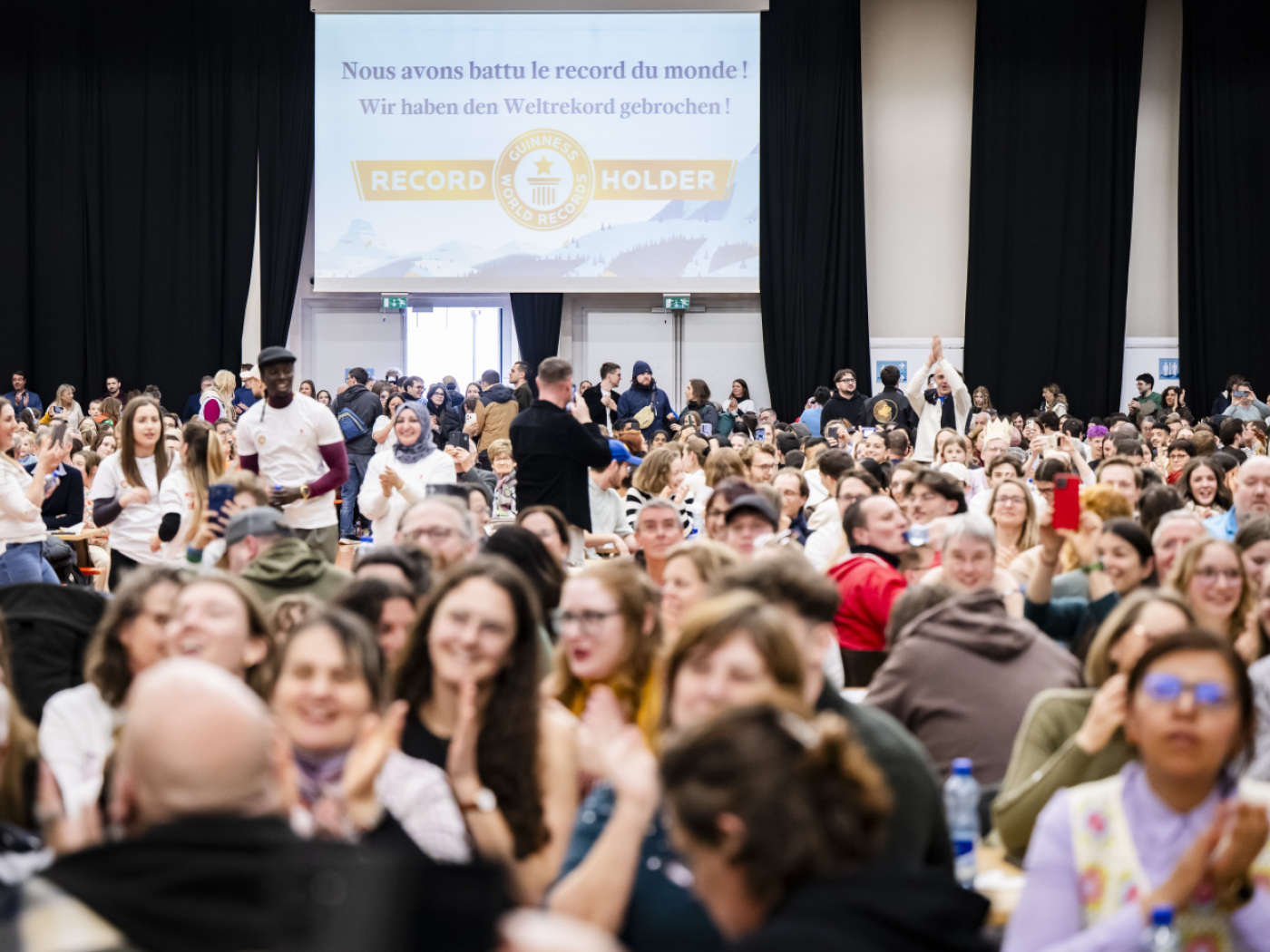 (Keystone-ATS) In occasione dei 125 anni di Villars Maître Chocolatier, 977 persone si sono date appuntamento per compiere l’impresa, ha constatato un fotografo di Keystone-ATS.