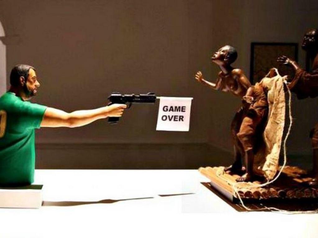 Salvini spara a migranti, scultura choc a Napoli