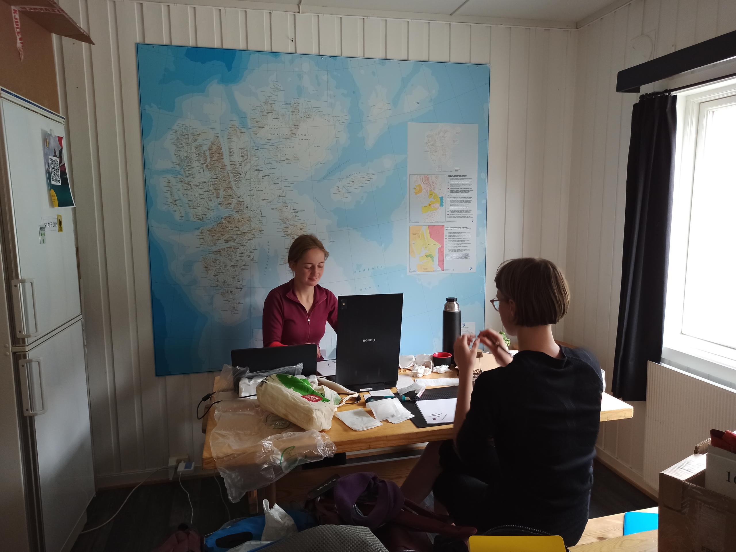 Adventdalen, una valle lunga 30 chilometri che si estende verso Longyearbyen, è stato uno dei primi siti che abbiamo visitato dopo il nostro arrivo alle Svalbard. Per noi la tundra è molto speciale, perché è qui che abbiamo iniziato a testare i nostri metodi e la nostra routine di lavoro. Dopo molte ore sul campo, la nostra attività è proseguita nei “laboratori”, ovvero, in questo caso, nelle piccole aree allestite di fronte alla nostra pensione e nel refettorio in cui facevamo colazione. Qui abbiamo conservato e trattato i campioni di piante e di terreno raccolti, che verranno successivamente analizzati a Zurigo.