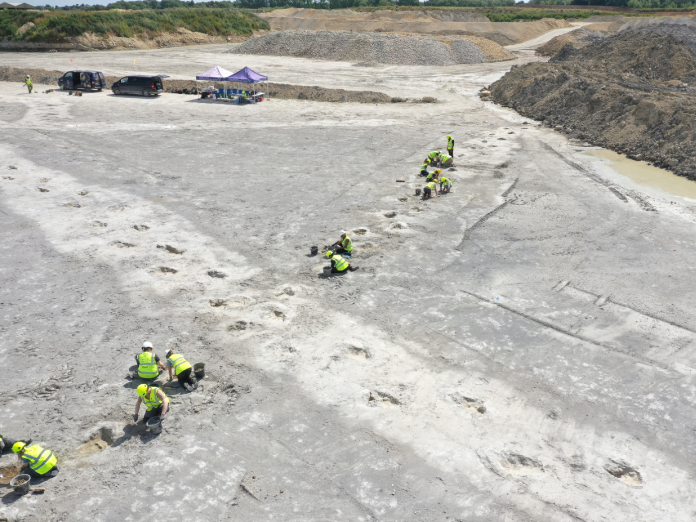 Per giorni il team ha scavato la superficie del terreno diventata molto più secca e dura rispetto a come era durante il precedente scavo del 2024. “Il clima caldo e secco ha cotto la superficie in alcuni punti come cemento, quindi non siamo stati in grado di scavare completamente ogni impronta”, racconta il geologo Duncan Murdock dell’Oxford University Museum of Natural History.