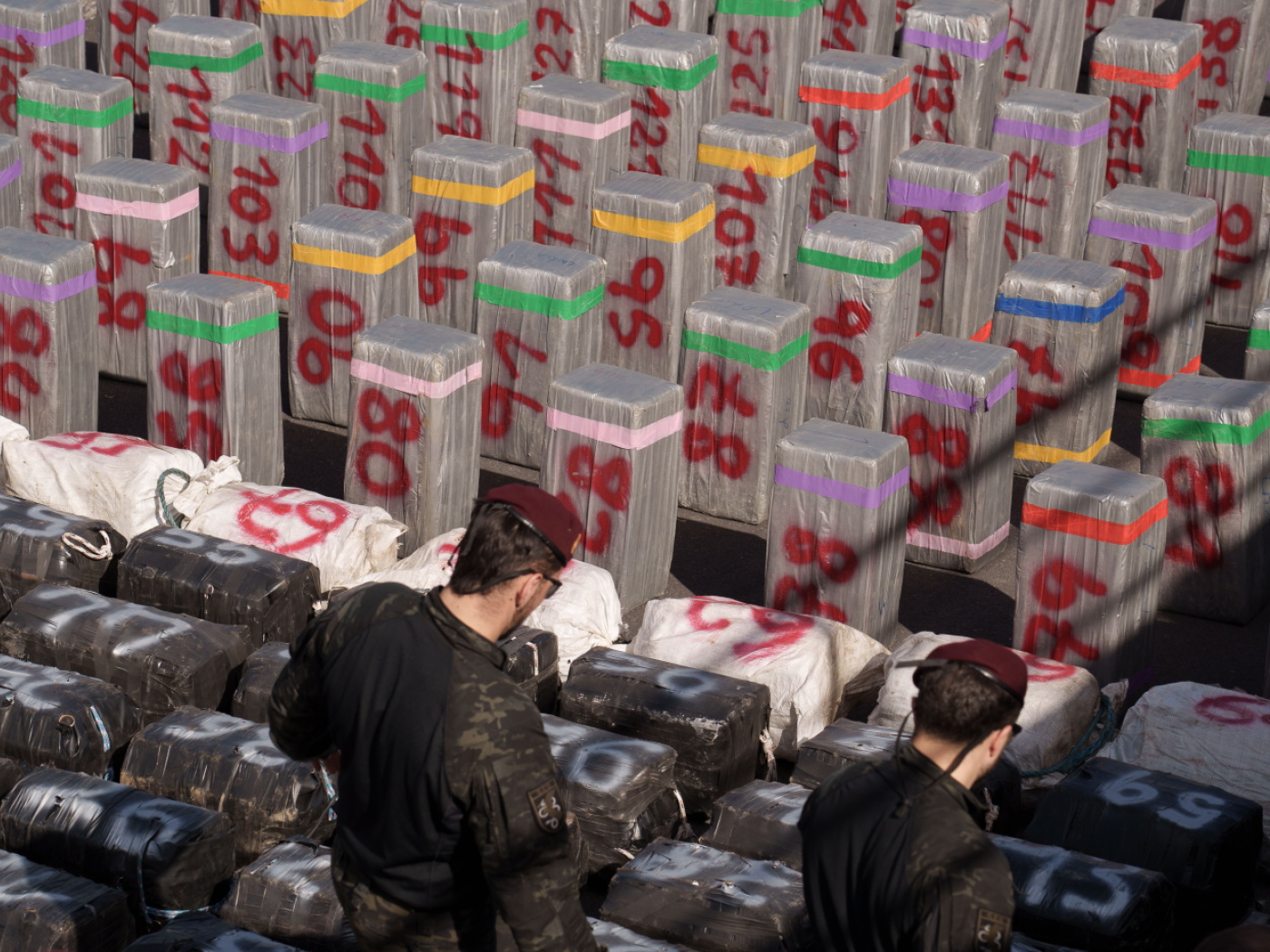 A bordo sono state arrestate 13 persone – sette indiani, quattro turchi e due serbi – e recuperati 9994 chili di cocaina. Parte della droga, quasi una tonnellata, era già pronta per essere scaricata in mare, mentre il resto era nascosto in stiva sotto strati di sale.