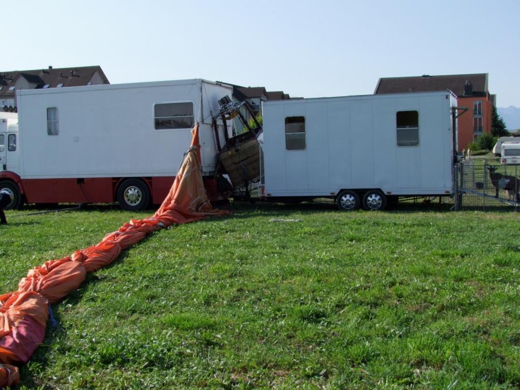 (Keystone-ATS) Una mongolfiera che si apprestava a posarsi su un prato stamane a Heerbrugg, nella valle del Reno sangallese, ha mancato l’atterraggio ed è finita incastrata tra un camion e il suo rimorchio parcheggiati sul prato stesso.