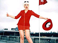 Il servizio di “Max” presenta la moglie di Borer in diverse situazioni. C’è la Shawne con cappello da cowgirl rosso fuoco munito di diadema tipo statua della libertà, foulard a stelle e strisce, spillone raffigurante il simbolo del dollaro su un petto piuttosto scoperto e due sfavillanti revolver nelle mani. Oppure la pin-up platinata in minigonna a fare l’autostop davanti ad una bandiera rossocrociata in tinta con il suo abitino.