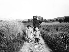 In nessun’altra regione della Svizzera si trovano tante persone dal fisico sgraziato, sorde o mute. Ciò va ascritto ai duri lavori delle donne, che spesso portano sulla schiena, in salita e in discesa, carichi pesantissimi persino il giorno del parto, alla poca destrezza delle levatrici e al cattivo allattamento dei bambini. Le madri, e in genere tutte le donne adulte di una famiglia, in primavera e in autunno sono lontane da casa tutto il giorno e lasciano in custodia i bambini ad altri bambini che a malapena si reggono da soli.
