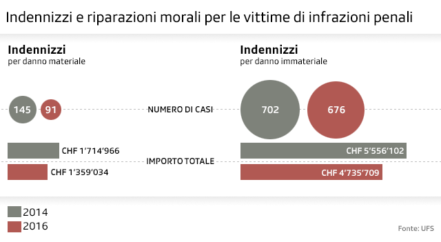Per decine di migliaia di franchi al mese il giovane avrebbe dovuto essere reintegrato nella società tramite discutibili programmi su misura che comprendevano anche allenamenti di kickboxing… senza successo. Anche se non sono direttamente comparabili, gli indennizzi e le compensazioni per le vittime sono relativamente bassi e nella maggior parte dei casi ammontano a poche migliaia di franchi.