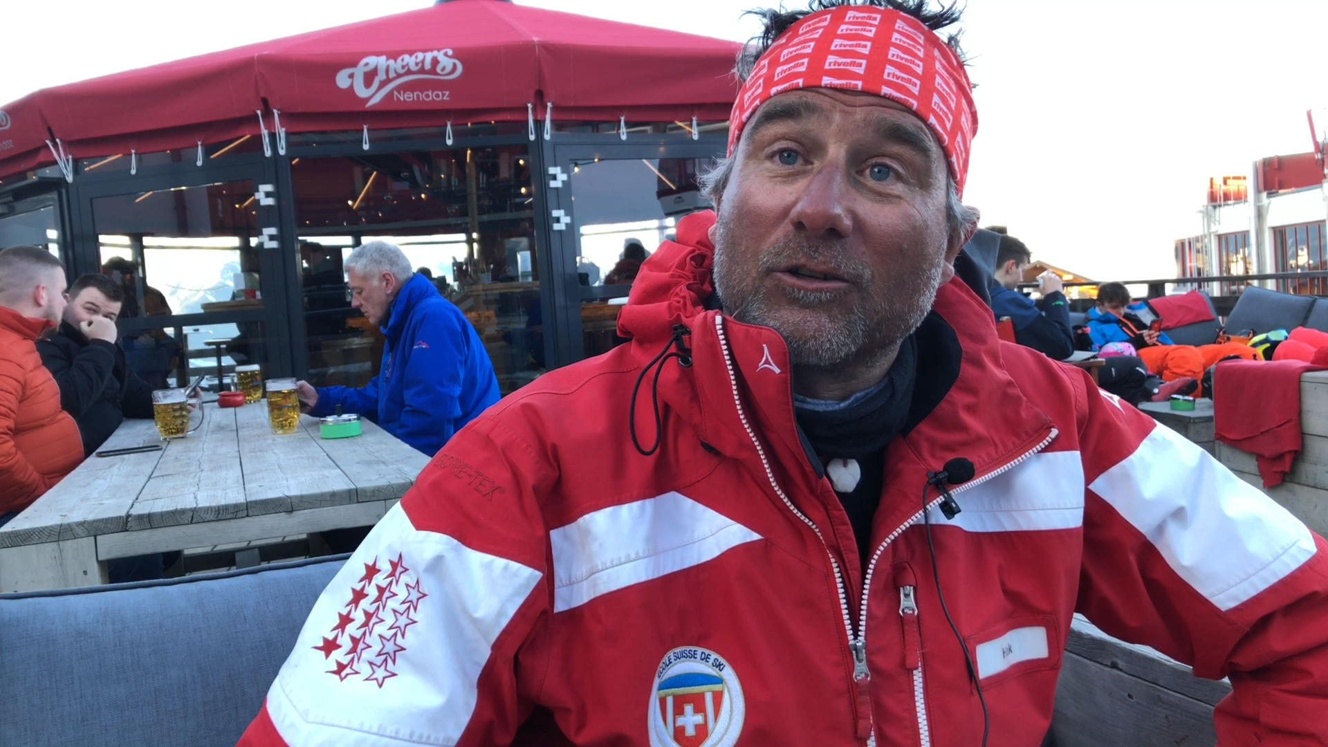 Le prime cabinovie della mattina scaricano decine di maestri di sci, vestiti di rosso. Tutti sono impiegati a stagione, e mentre la maggior parte sono svizzeri, alcuni provengono da altre parti. Hak Walenkamp, 49 anni, è olandese e da 10 anni ritorna a Nendaz ogni inverno. Niente di presagibile che questo anziano ex proprietario di un’agenzia immobiliare sia venuto da un paese pianeggiante a insegnare a sciare.