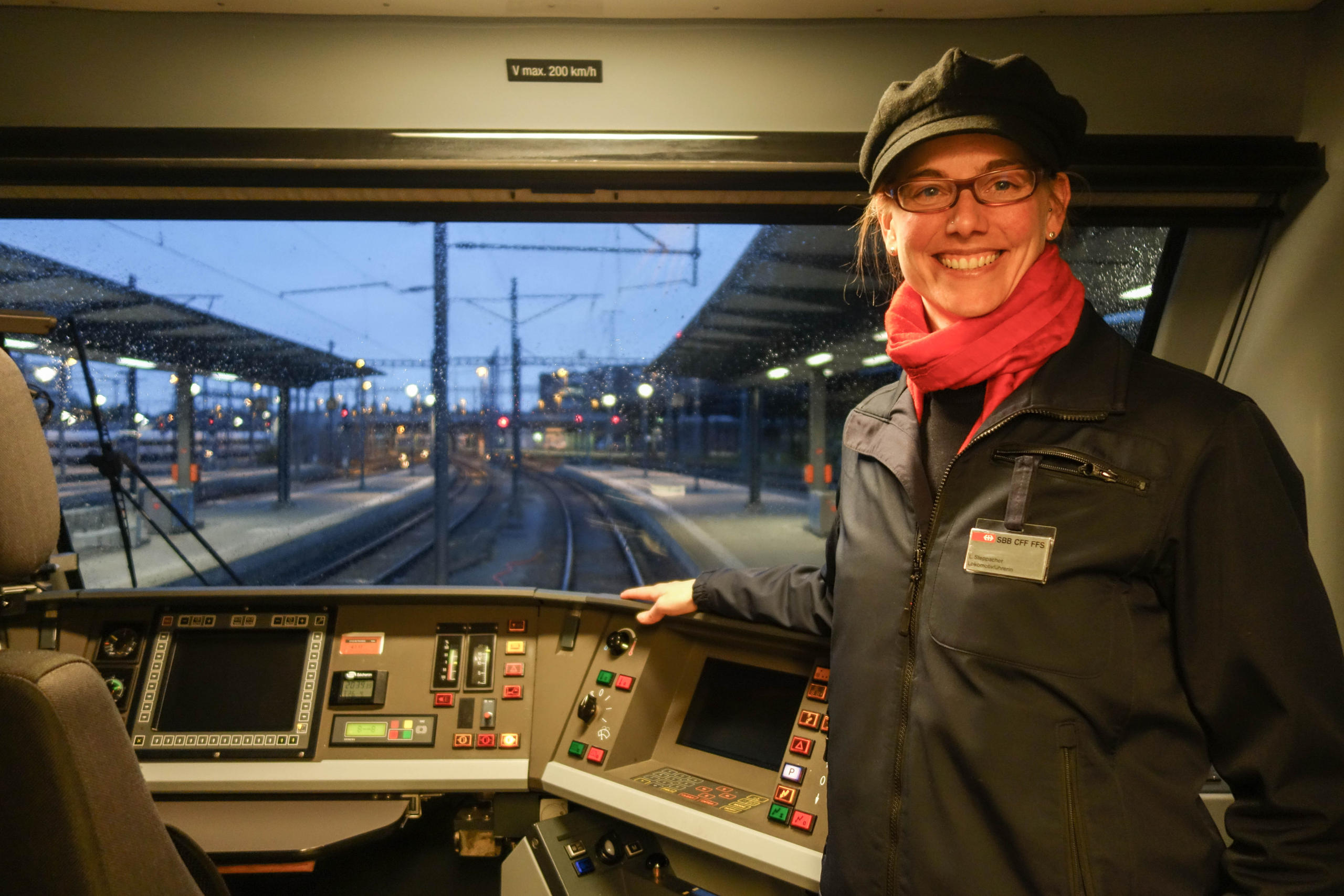 «Non c’è niente di più meraviglioso di un viaggio all’alba o al tramonto! Te li puoi godere e sei pagata», dice con entusiasmo, scusandosi per le nuvole che nascondo il cielo rosato del tramonto tra Zurigo e Basilea. Ma sono troppo eccitata per prendermela. Ho il privilegio di sedere nella cabina di guida. Sicuramente il miglior posto a sedere del treno, perché posso semplicemente osservare e godermi il viaggio.