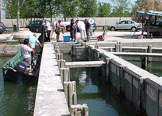 Il lavoriero, una sorta di chiusa un tempo costruita in canne e pali, ora in cemento, è usata per intrappolare al momento opportuno le anguille. Il pregiato pesce di queste valli viene venduto a circa 20 euro nelle pescherie di Comacchio. Si può gustare alla brace, in umido o nel brodetto.