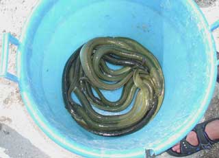 Ecco le pregiate anguille. Si riproducono in mare, ma poi cercano rifugio nelle calde acque lagunari, anche per sfuggire ai predatori. Raggiunta la maturità sessuale, cercano di ritornare al mare, risalendo i canali. E lì, durante la monta, in autunno e in primavera, vengono catturate nei lavorieri.