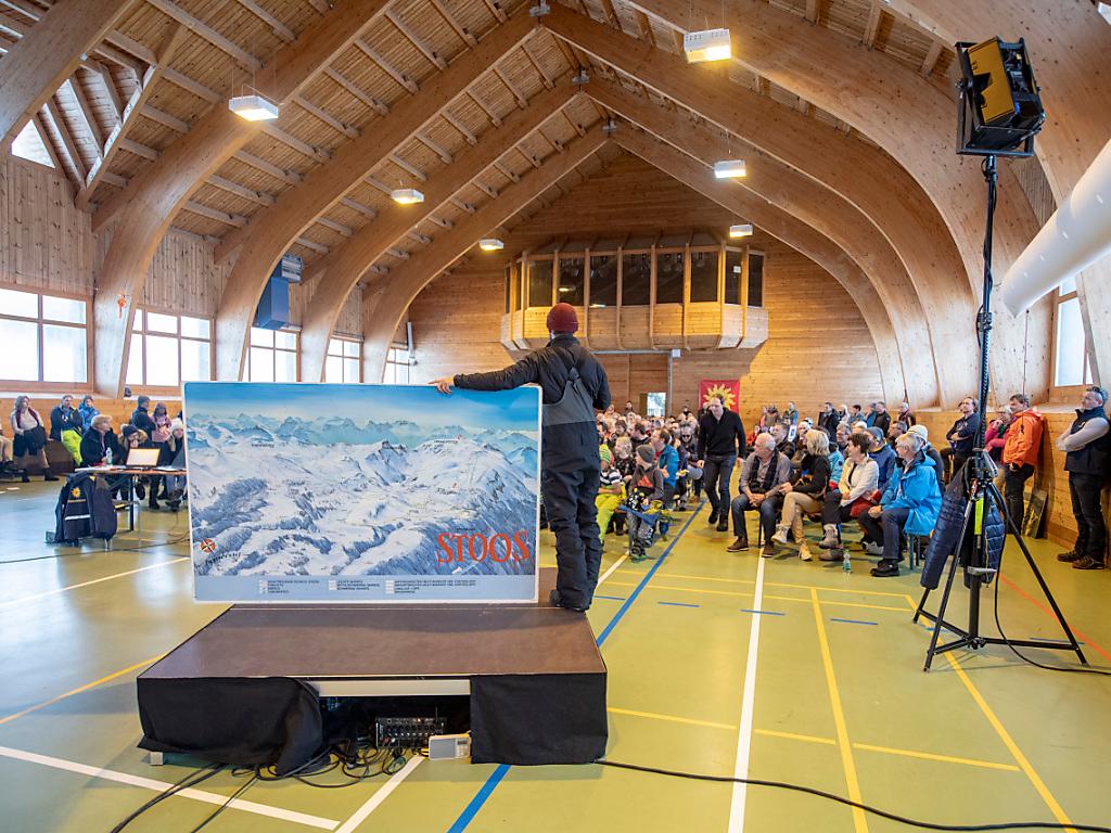 Le cabine salgono ruotando da 562 metri di altitudine fino a raggiungere in quattro minuti i 1306 metri. Il mezzo, realizzato in sostituzione della vecchia funicolare costruita nel 1933, può trasportare fino a 136 persone. Il tragitto fino a Stoos, dove abitano circa 150 persone, dura quattro minuti.