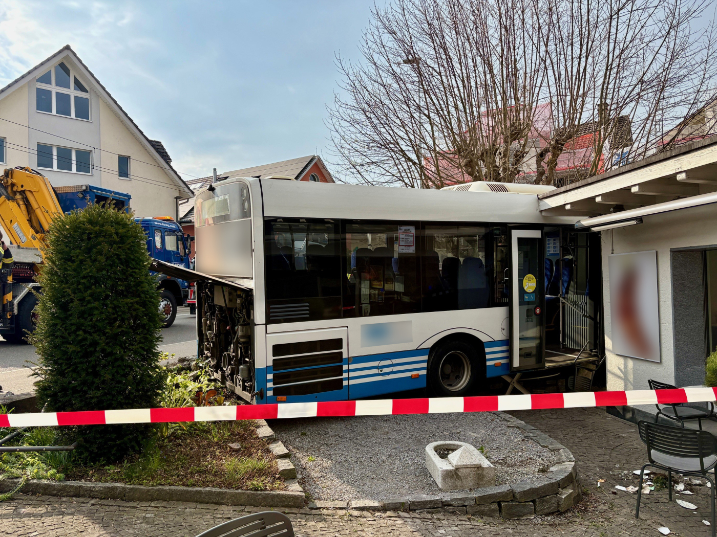 Rocambolesco incidente per fortuna senza gravi conseguenze questo pomeriggio a Münchwilen (TG): dopo una collisione con un rimorchio di un'auto, un bus di linea ha finito la sua corsa contro una panetteria. Nessuno è rimasto ferito, ma ingenti sono i danni materiali.