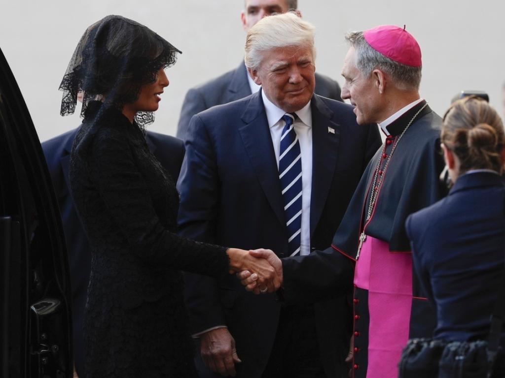 Il corteo presidenziale, proveniente da Villa Taverna, è entrato in Vaticano dalla porta laterale del Perugino per dirigersi al Cortile di San Damaso. Da lì la delegazione entra nel Palazzo Apostolico vaticano. Al suo arrivo al Cortile di San Damaso, in Vaticano, sceso dal Suv presidenziale, Trump, accompagnato dalla moglie Melania, è stato accolto da monsignor Georg Gaenswein, prefetto della Casa Pontificia. Trump è in abito scuro e cravatta regimental, la signora Melania in abito scuro.