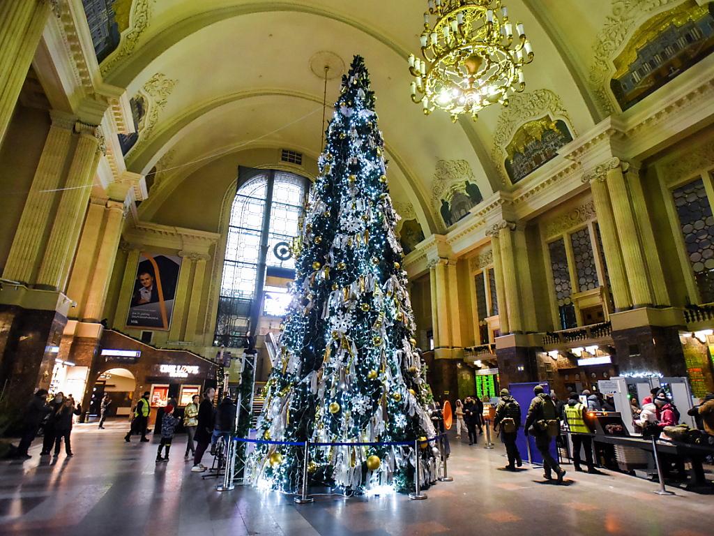 L'albero di Natale della stazione centrale di Kiev. KEYSTONE/EPA/OLEG PETRASYUK sda-ats